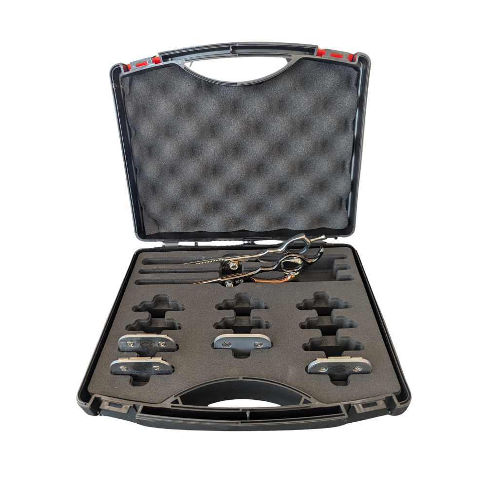 We never leave for a grooming job without this case. It’s sturdy, compact, and gives peace of mind knowing our blades and scissors are fully protected. The locks are great for travel, and the padding keeps everything perfectly in place — no more chipped blades or loose tools! Perfect for sending your blades and scissors in to us for sharpening :)