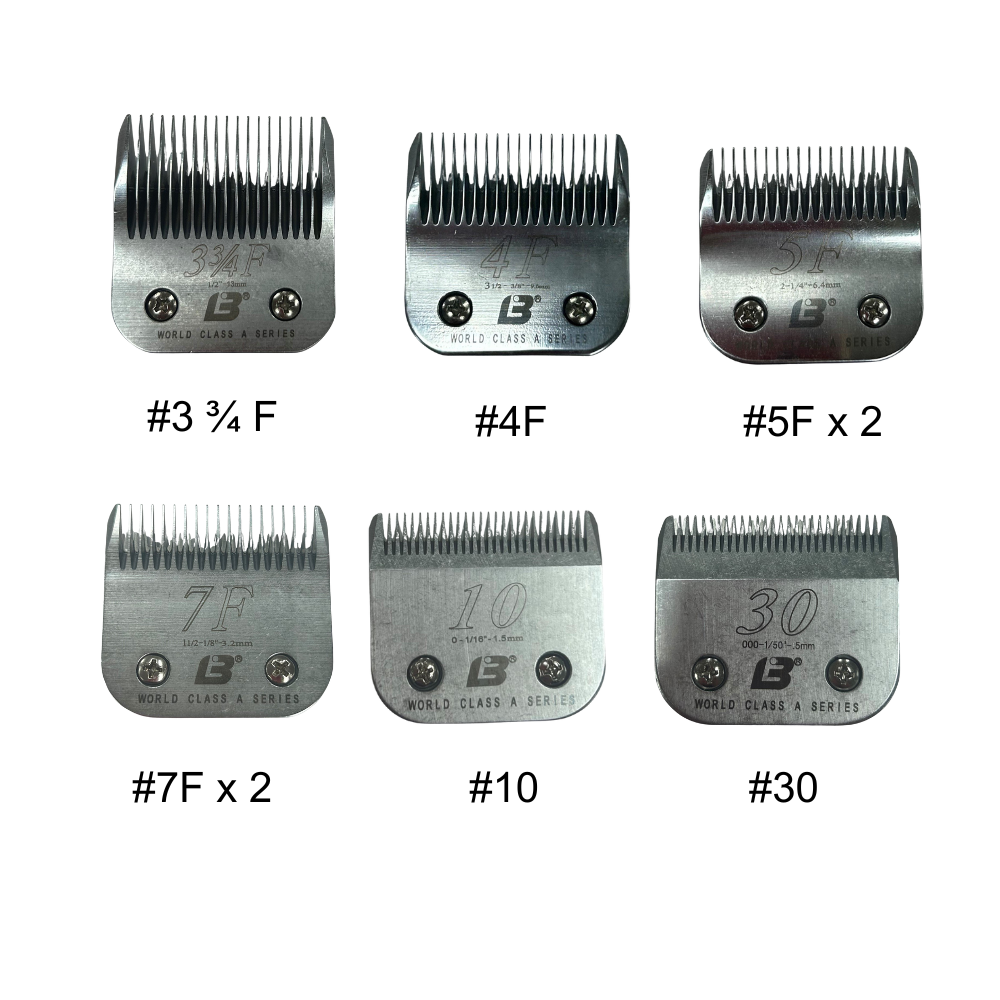 This bundle covers the most popular blade lengths groomers rely on daily — perfect for everything from body clips to finishing work.